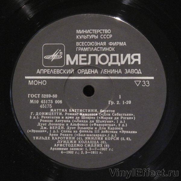 - Исполнитель: Маттиа Баттистини - Г. Доницетти, Дж. Верди, А. Рубинштейн, П. Тости