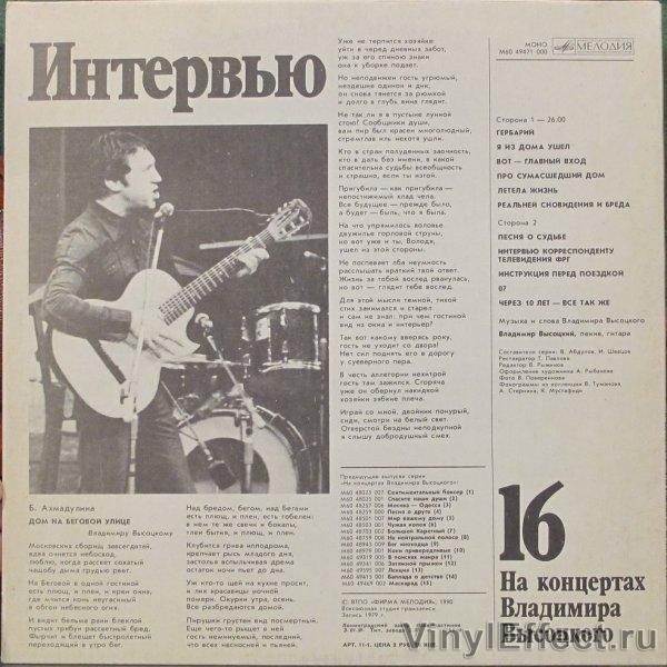 - Альбом: Интервью. На концертах Владимира Высоцкого 16